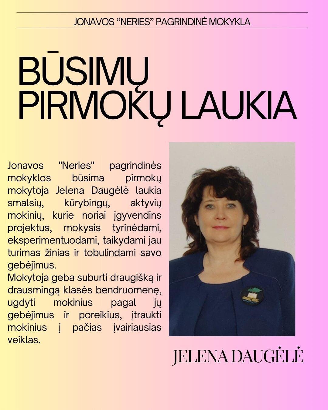 Jonavos "Neries" pagrindinėje mokykloje dirba nuostabios, būsimos pirmokų mokytojos, laukiančios Jūsų su nekantrumu: