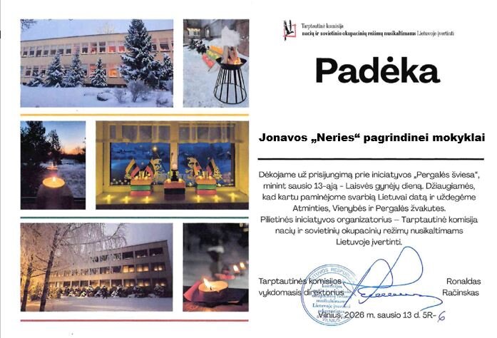Ryte prisidėjome prie iniciatyvos “Pergalės šviesa” ir pirmąją pamoką mokiniai pradėjo simboliškai žvakių šviesoje ir tylos minute, pagerbdami Laisvės gynėjus.